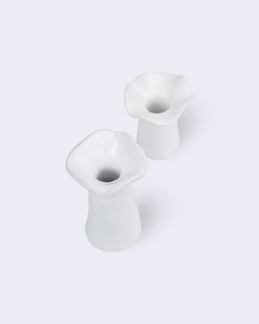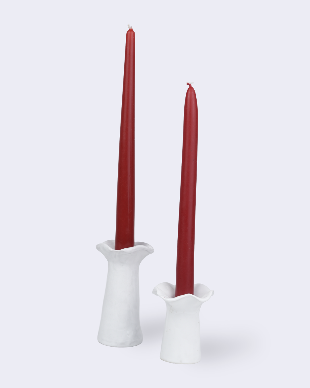 - Two white handcrafted candle holders by Mira Melki